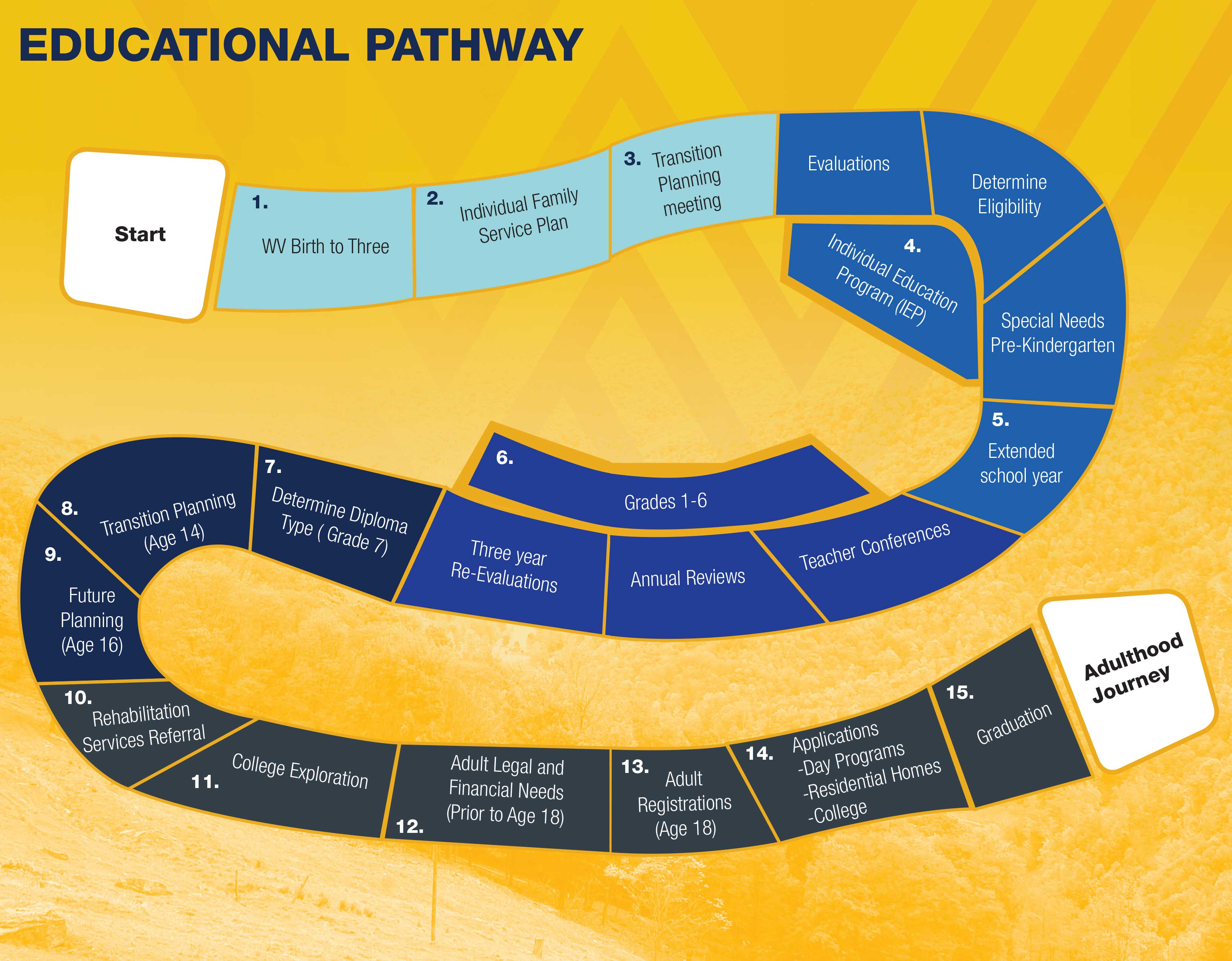 - WVU Country Roads Program – On-campus non-degree certificate program to enhance independence by providing academic courses, social engagement, and applied work experiences. Country Roads could be the post-high school graduation plan!